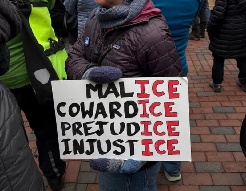 These are some of the photos from the protests which took place on January 10 and 11. Robert Hubbell invited his readers to submit photos, and they came in from all over the country. These are only a selection. Some of the senders wanted to stress how many people there were. I selected photos which contained signs (which included T-shirts when applicable.) Not all the signs seen were original, but most of them were made on very short notice. The date was not announced until January 9. My personal favorite is the one which starts “ICE OUT FOR GOOD,” I’m always up for a clever double entendre. Some of the photos are pretty small, but they are clear enough to blow up nicely, or to be reaf with a screen magnifier without blurring. small, but