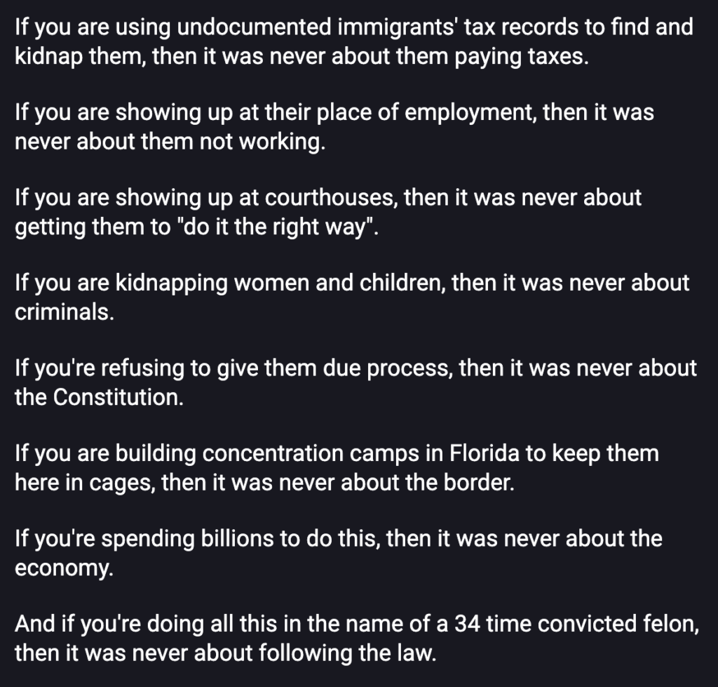 I’m not putting this from The F* News in Sunday because it’s too mixed. The video produced by members of Congress is good as far as it goes, but it doesn’t go far enough. It doesn’t list (as the article does) any of the resources service members can rely on for support against the chain of command giving the illegal order. However, it is not nothing. (Also, the Gamboge Garbage is calling for them to be executed. Se the next article, from Common Dreams)